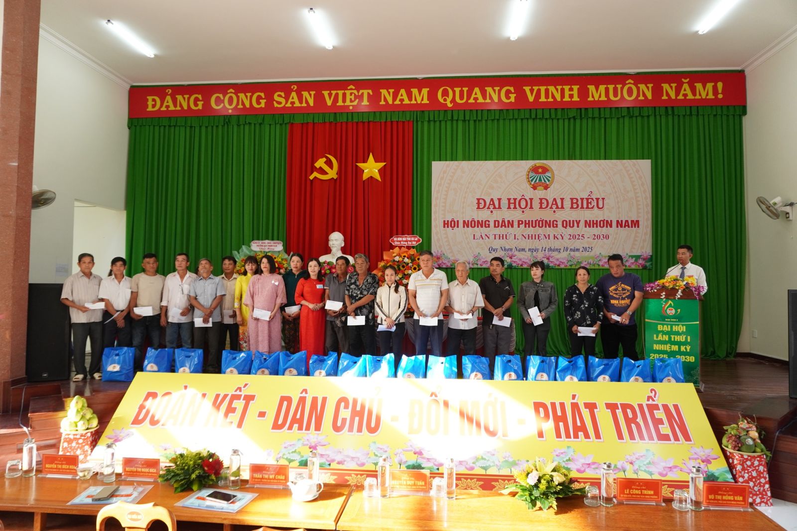Hội Nông dân phường Quy Nhơn Nam trao quà cho hội viên khó khăn tại Đại hội Đại biểu.