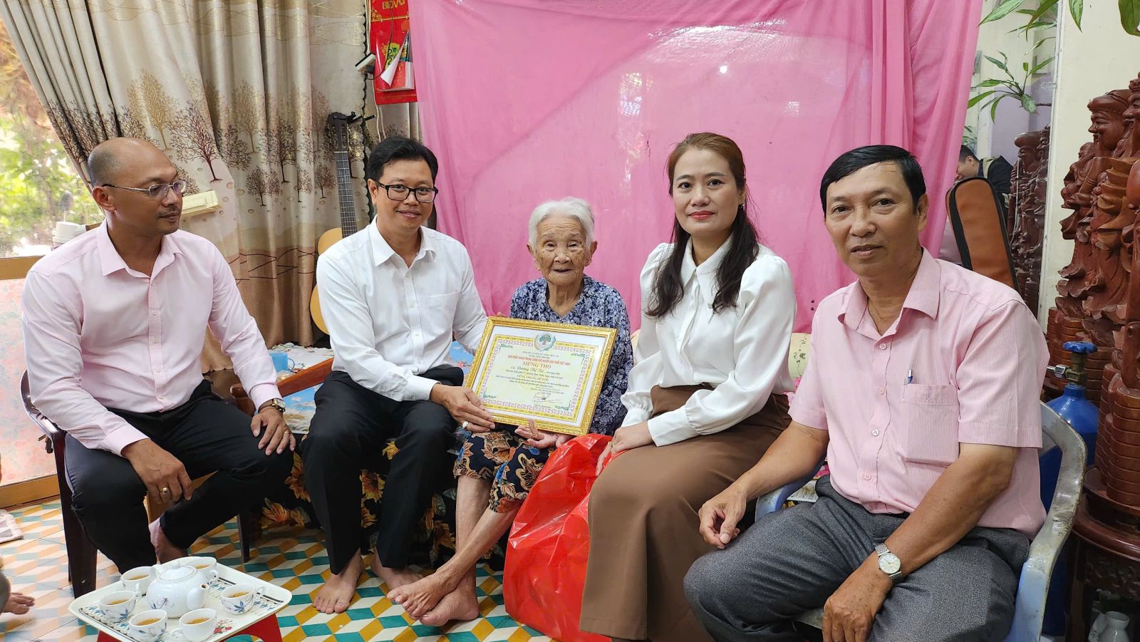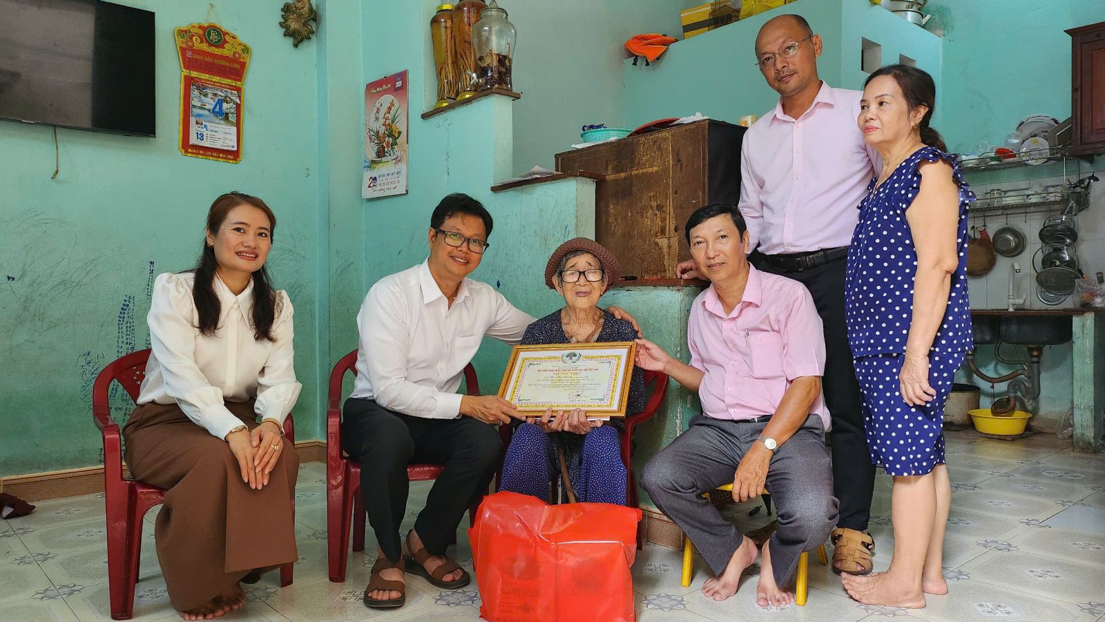 Đoàn đã đến thăm cụ Dương Thị Trĩ, sinh năm 1920 (105 tuổi), hiện là Người cao tuổi nhất của phường, cư trú tại khu phố 27, đường Lý Thái Tổ; cụ Bùi Đình Tranh, sinh năm 1930 (95 tuổi) và cụ Tô Thị Cảnh, sinh năm 1930 (95 tuổi), cùng đang sinh sống tại khu phố 27, phường Quy Nhơn Nam.