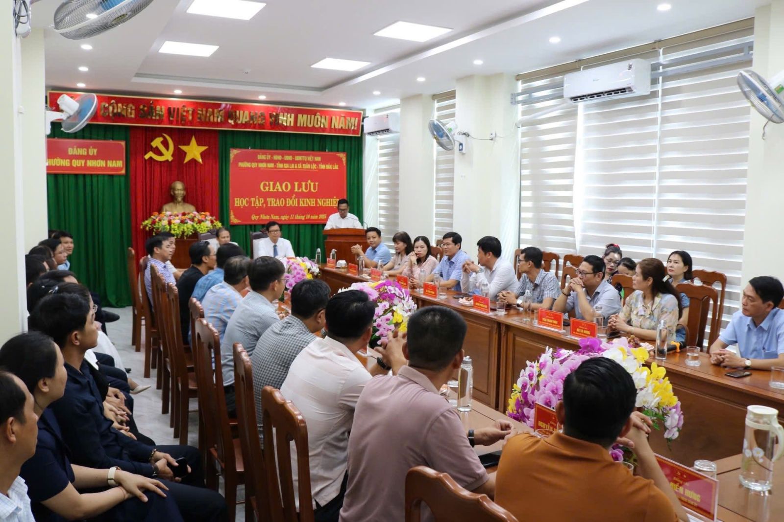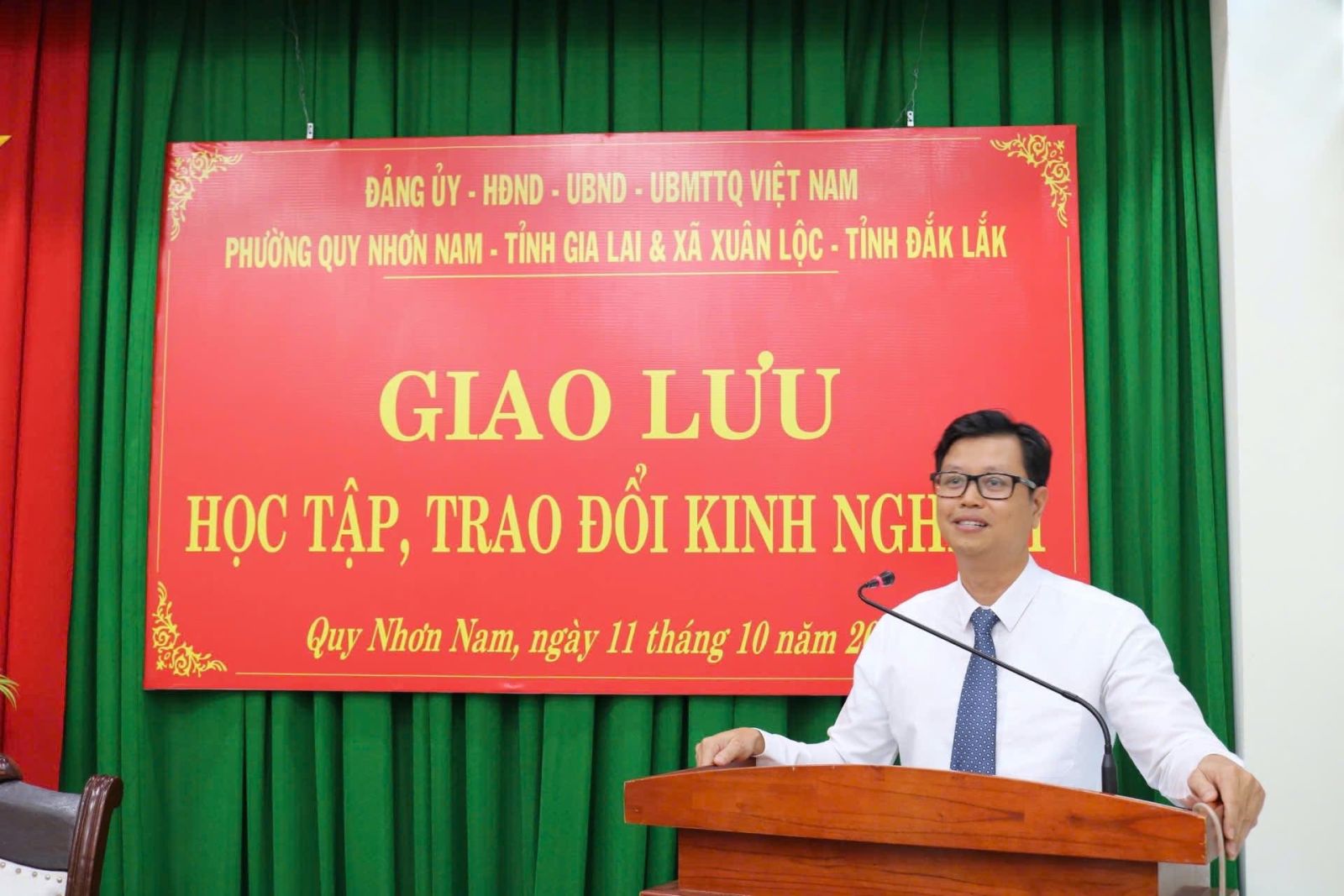 Tham dự buổi giao lưu có đồng chí Đặng Mạnh Cường – Bí thư Đảng ủy, Chủ tịch HĐND phường Quy Nhơn Nam; đồng chí Trần Xuân Đạt – Bí thư Đảng ủy, Chủ tịch HĐND xã Xuân Lộc; cùng các đại diện lãnh đạo Đảng ủy, HĐND, UBND, UBMTTQ Việt Nam và các Hội đoàn thể xã Xuân Lộc (tỉnh Đắk Lắk) và phường Quy Nhơn Nam (tỉnh Gia Lai).