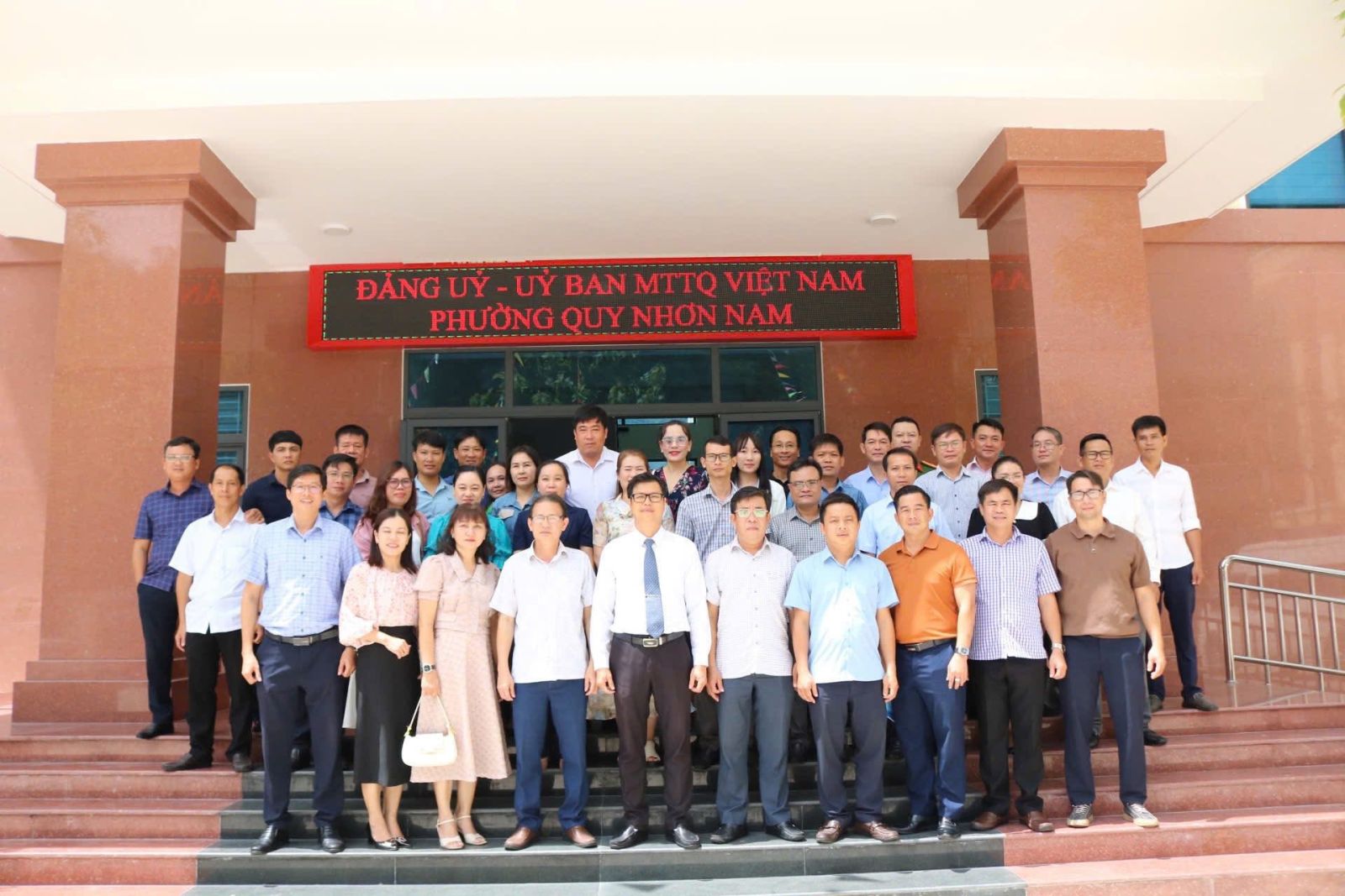 Hai địa phương chụp hình lưu niệm tại trụ sở Đảng ủy - Uỷ ban MTTQ phường Quy Nhơn Nam