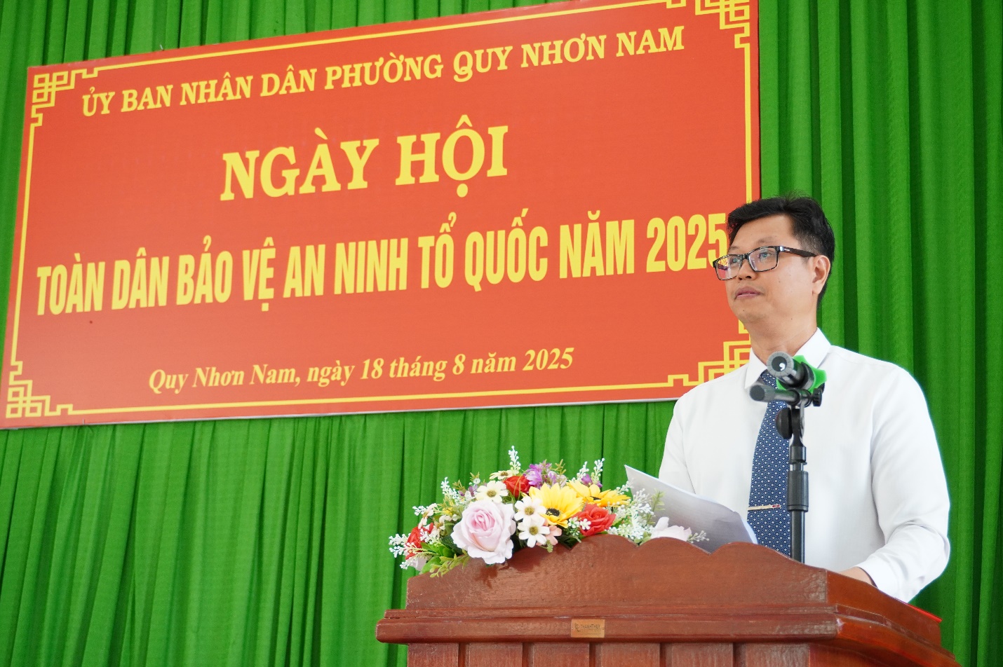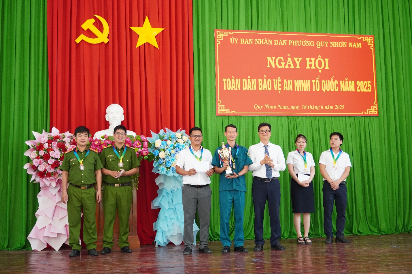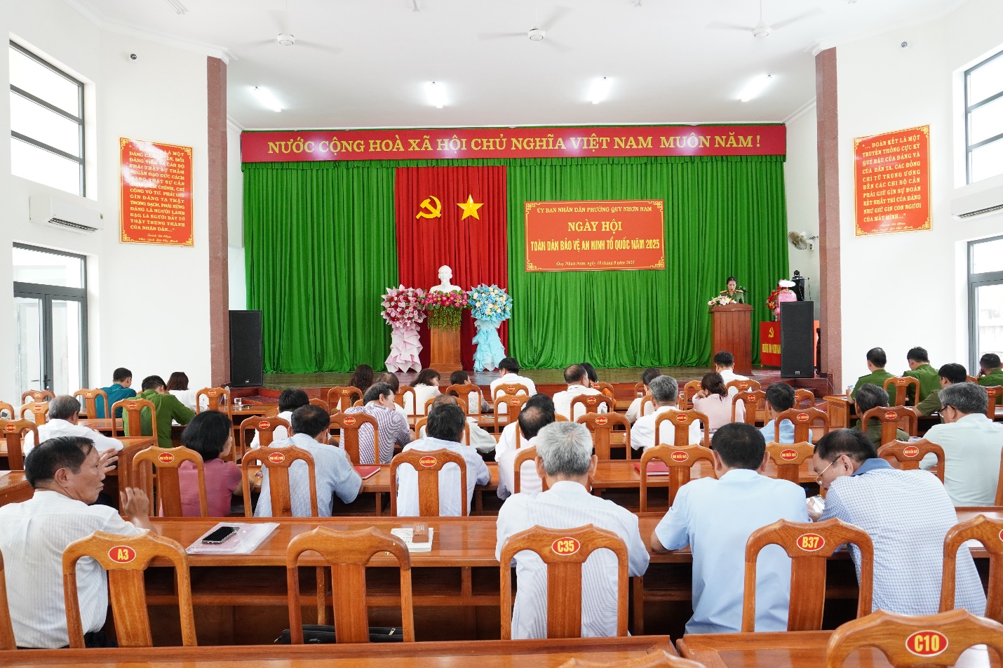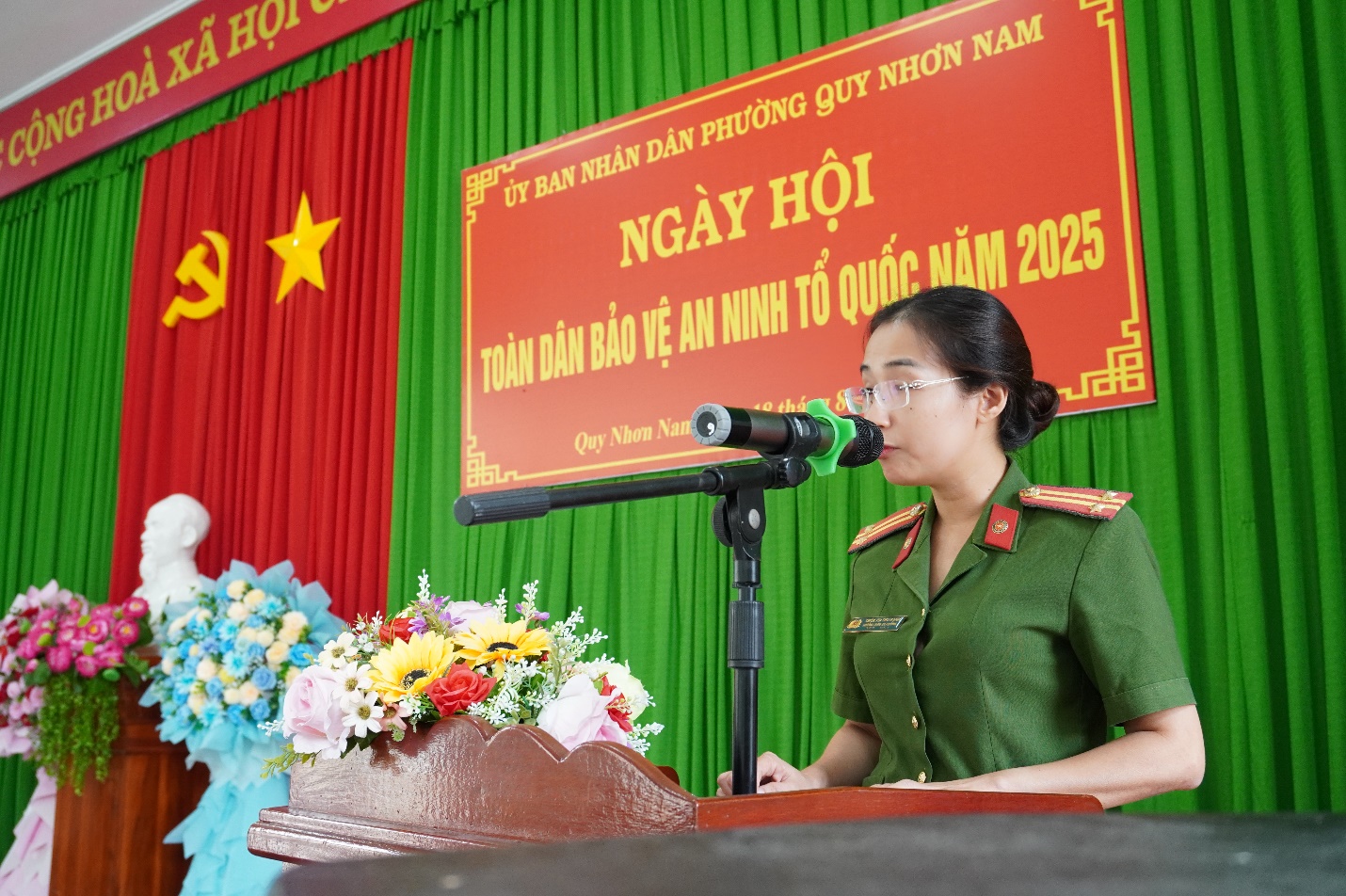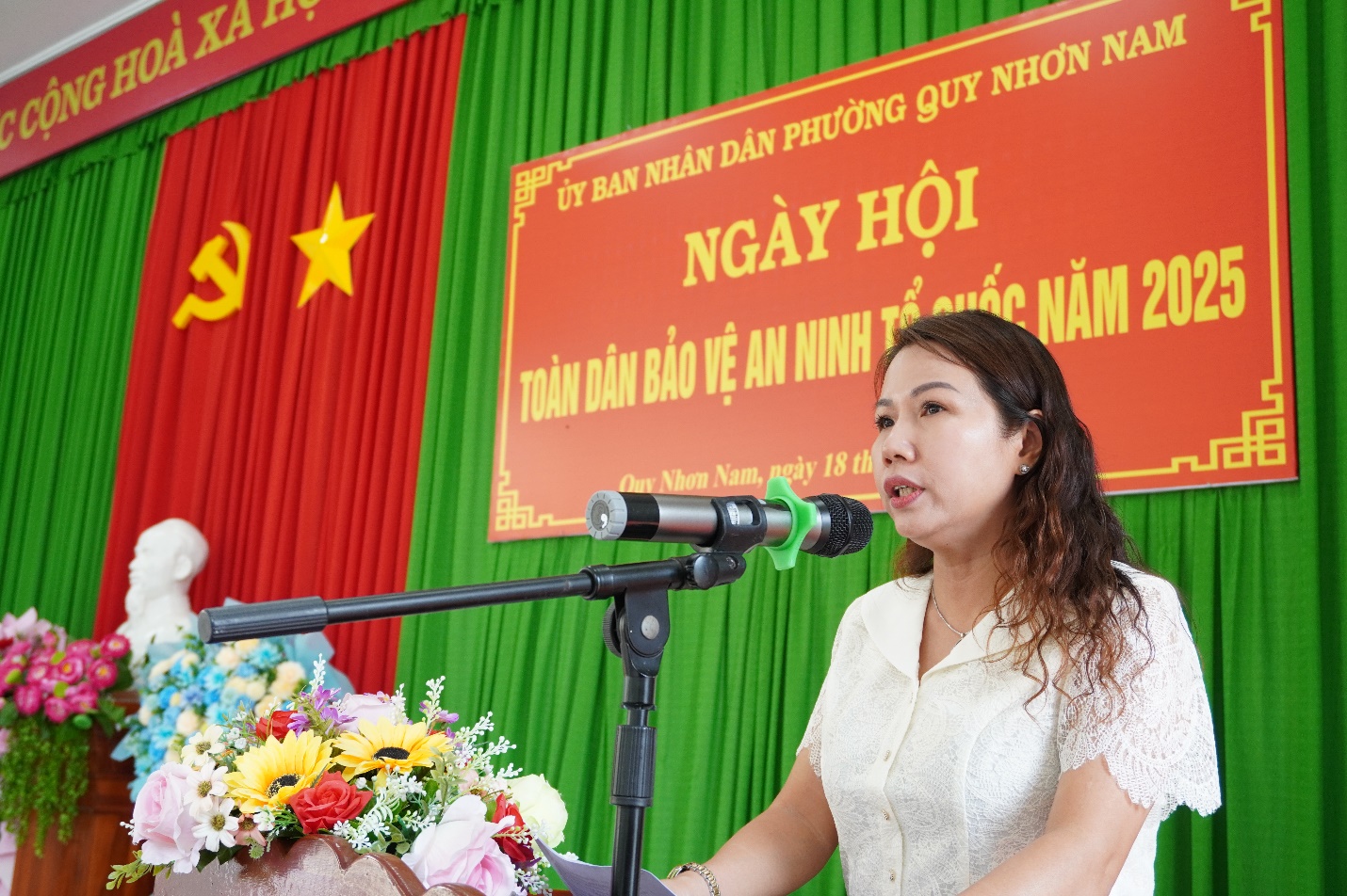 Phát biểu tại Ngày hội, đồng chí Trần Thị Thu Hạnh – Trưởng Công an phường ôn lại truyền thống ý nghĩa ngày 19/8 và Báo cáo tình hình kết quả công tác xây dựng phong trào toàn dân bảo vệ ANTQ gắn với các phong trào thi đua yêu nước, phong trào cách mạng ở địa phương 8 tháng đầu năm 2025. Nhiều mô hình tự quản về an ninh trật tự, cách làm hay, sáng tạo từ cơ sở được chia sẻ, nhân rộng. Các hoạt động văn hóa, thể thao sôi nổi đã góp phần gắn kết cộng đồng. Nhằm hưởng ứng Ngày hội, Công an phường Quy Nhơn Nam đã tổ chức giải Bida đôi nam với sự tham gia của 12 đội. Kết quả, giải Nhất thuộc về đội UBND phường, giải Nhì thuộc về đội Mobifone Bình Định và giải Ba được trao cho đội Công an phường, qua đó góp phần lan tỏa tinh thần đoàn kết, hưởng ứng Ngày hội toàn dân bảo vệ ANTQ.