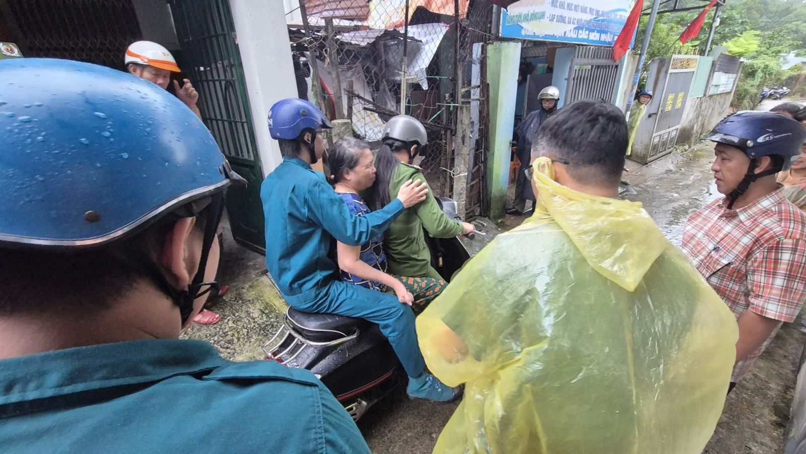 Chủ tịch UBND phường Nguyễn Thị Bích Hoa chỉ đạo hỗ trợ di dời các hộ dân có người bệnh nặng đến nơi an toàn trước bão.
