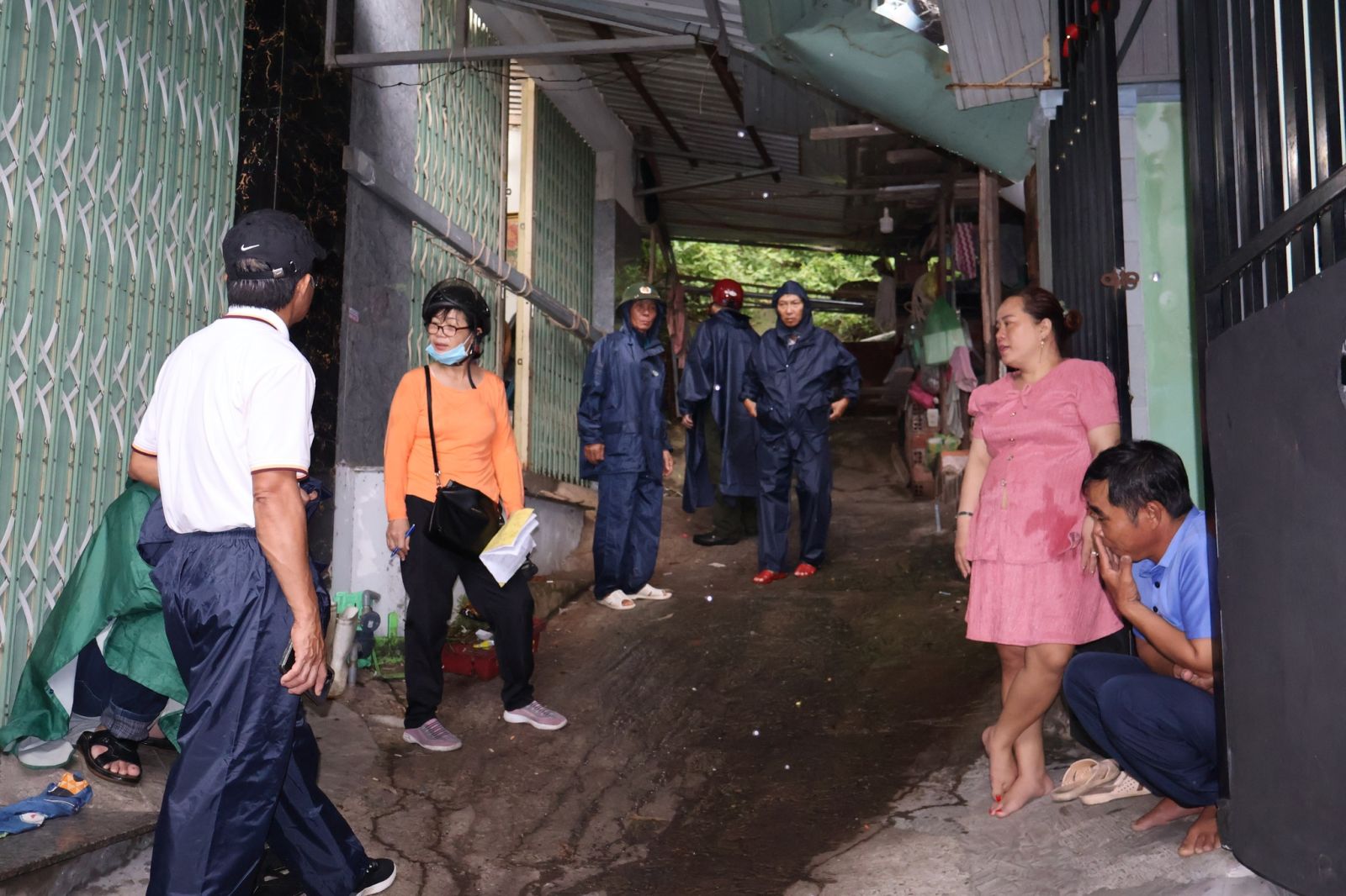 Đoàn công tác đến từng khu dân cư, đặc biệt tại các khu vực gần đồi núi, nguy cơ sạt lở, nhà tạm, nhà xuống cấp và hộ sống biệt lập trên triền đồi, để hướng dẫn người dân gia cố nhà cửa, chặt tỉa cây cối, kê cao tài sản và chuẩn bị lương thực, nước uống cùng vật dụng thiết yếu.