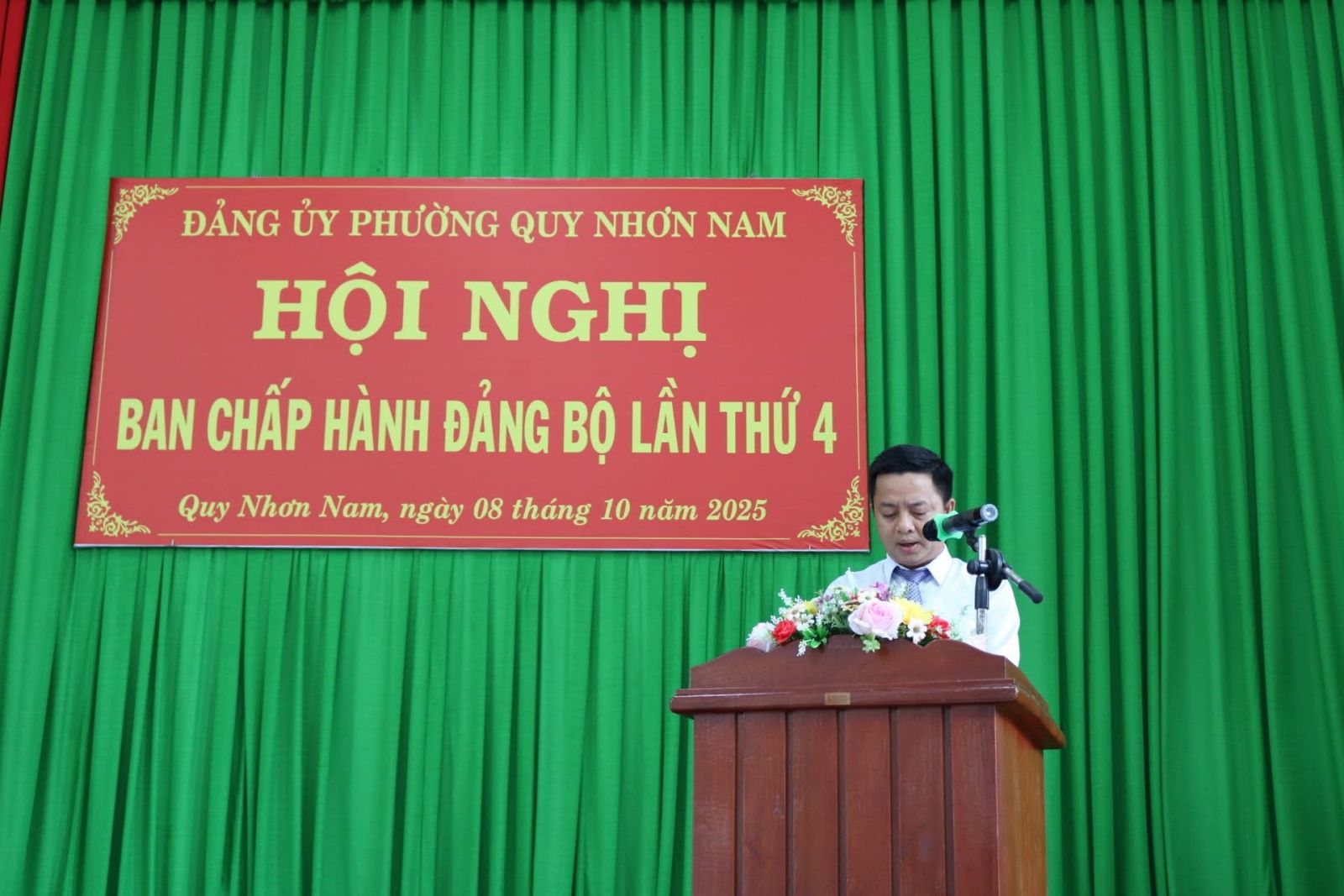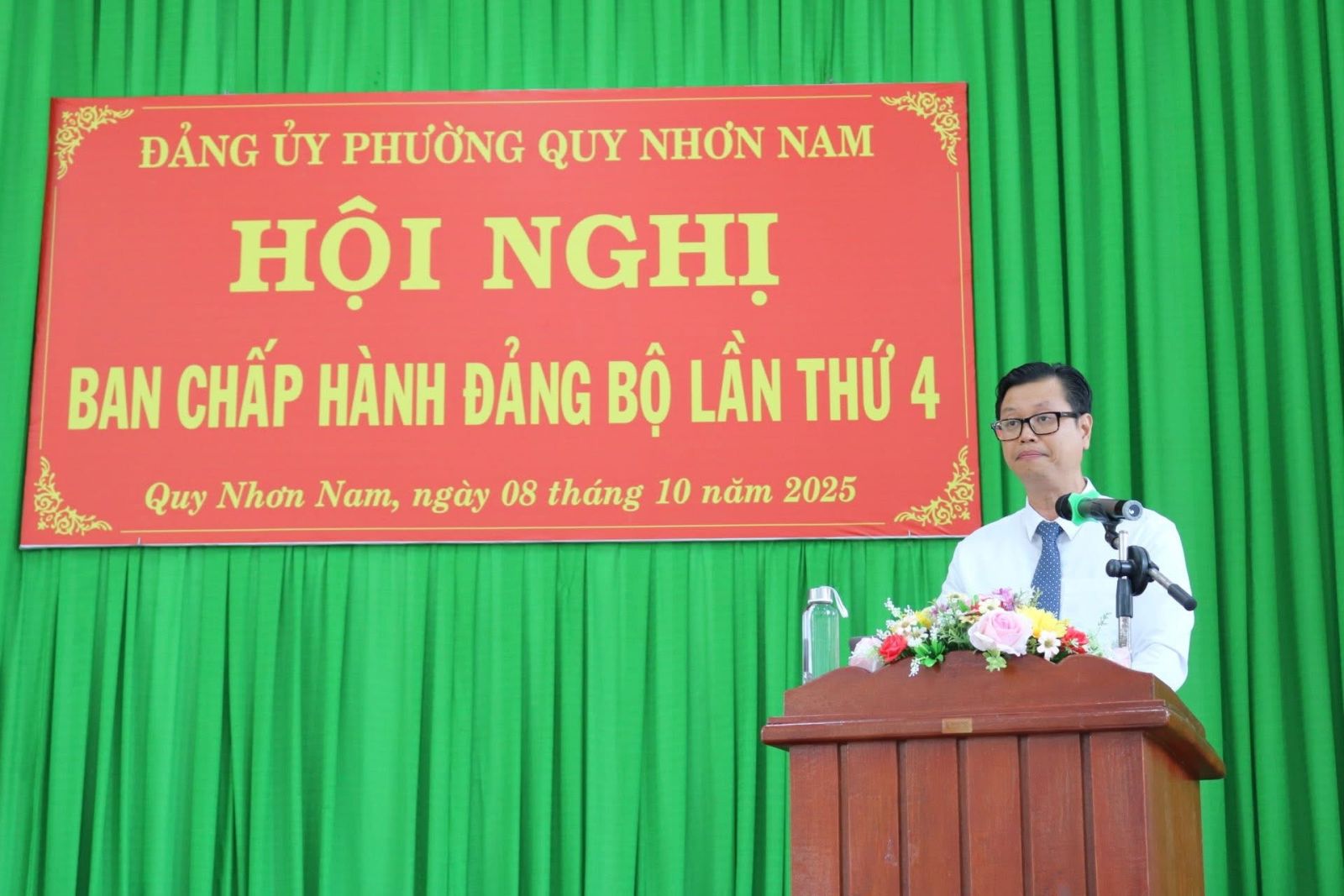 Vào sáng ngày 08/10/2025, Đảng ủy phường Quy Nhơn Nam đã tổ chức Hội nghị sơ kết công tác 9 tháng đầu năm và triển khai nhiệm vụ 3 tháng cuối năm 2025. Hội nghị nhằm đánh giá kết quả thực hiện nhiệm vụ chính trị trong thời gian qua, đồng thời đề ra phương hướng, giải pháp để hoàn thành tốt các chỉ tiêu, nhiệm vụ đề ra trong năm. Thông qua Chương trình hành động thực hiện Nghị quyết Đại hội đại biểu Đảng bộ phường lần thứ I, nhiệm kì 2025 - 2030.