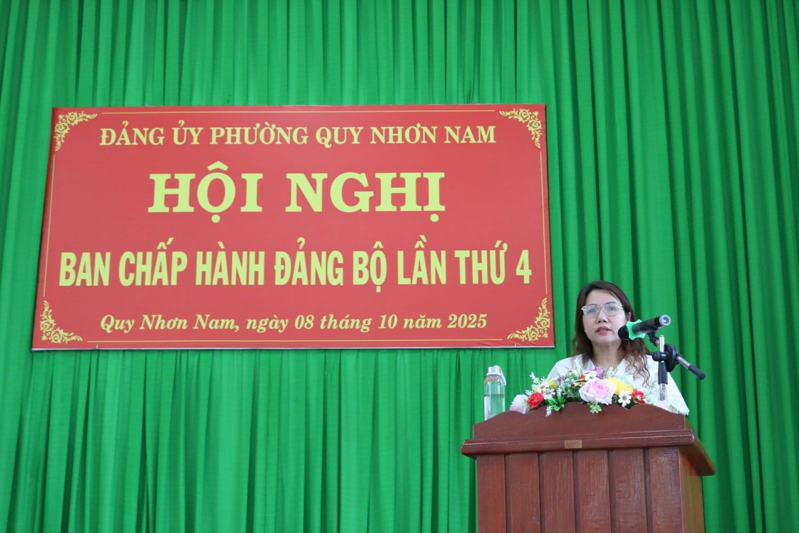 Đồng chí Nguyễn Thị Bích Hoa - Phó Bí thư Đảng ủy, Chủ tịch UBND phường thông qua Chương trình hành động thực hiện Nghị quyết Đại hội đại biểu Đảng bộ phường Quy Nhơn Nam lần thứ I, nhiệm kỳ 2025-2030