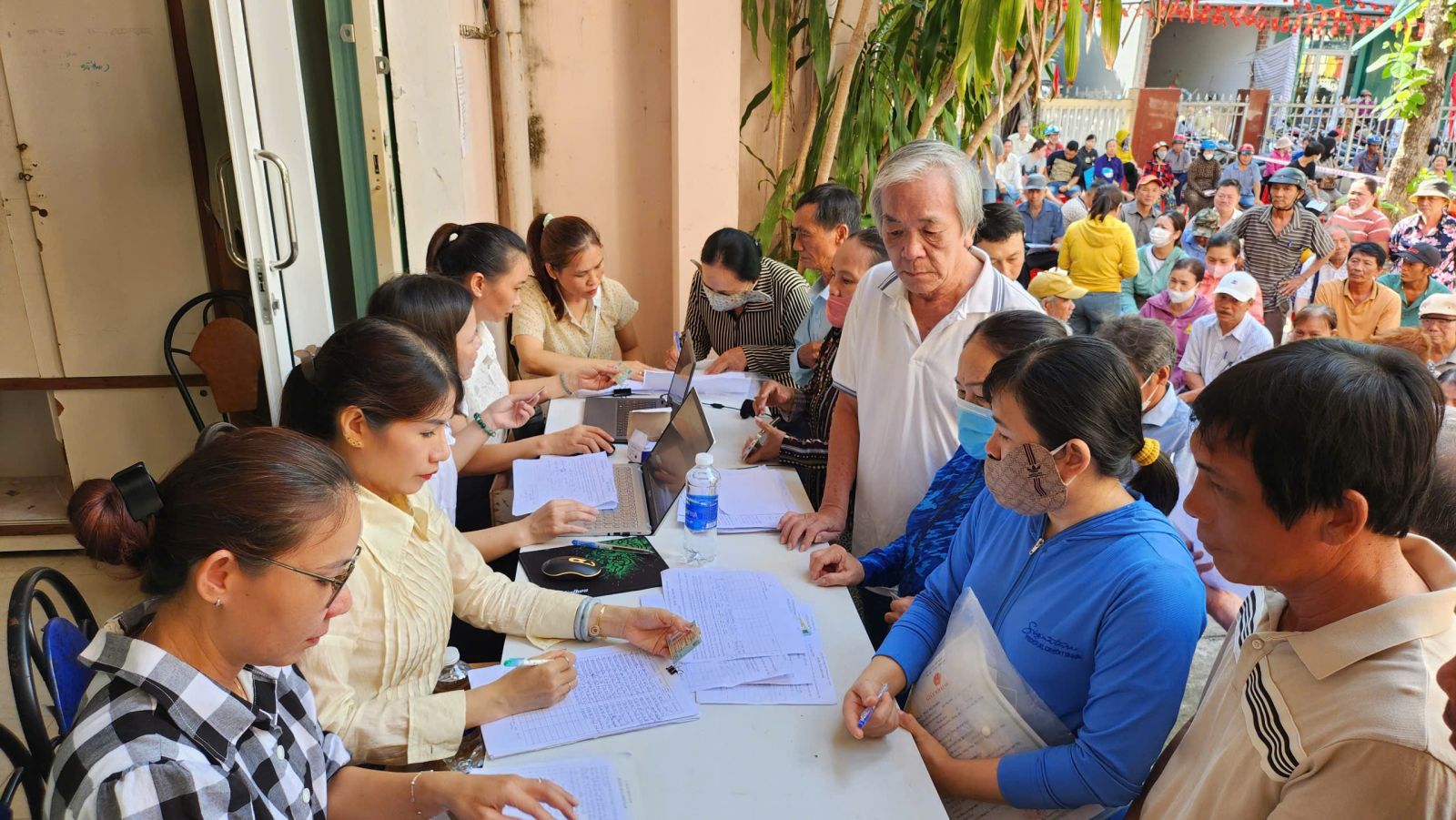 Người dân khi đến điểm tặng quà sẽ được đối chiếu danh sách trên Cơ sở dữ liệu quốc gia về dân cư để nhận quà.