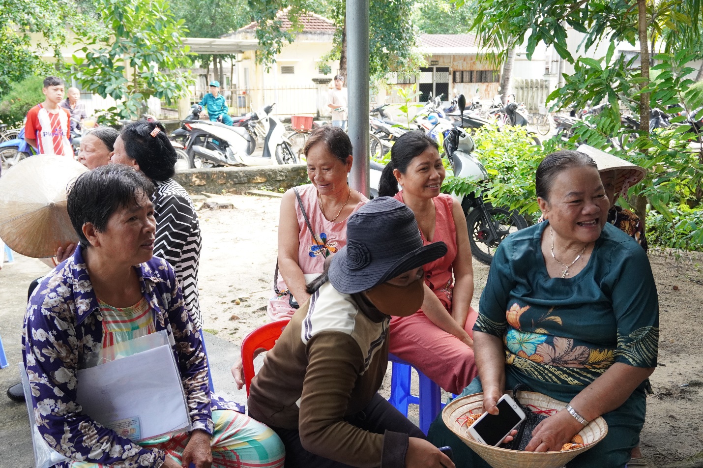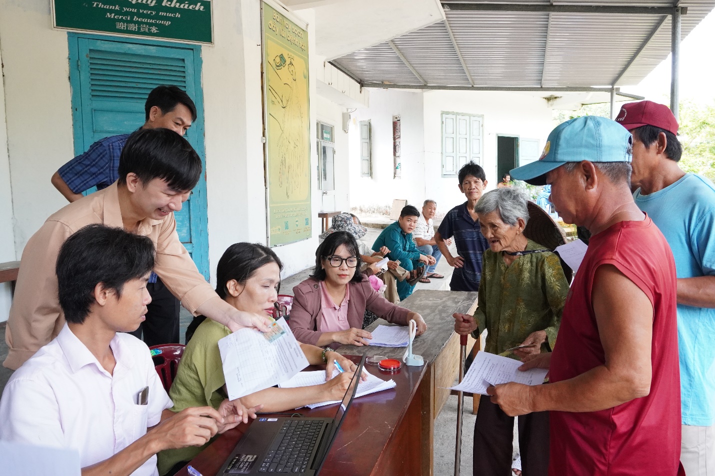 Niềm vui của người dân đang điều trị tại bệnh viện Phong – Da liễu Trung ương Quy Hòa khi làm thủ tục để nhận quà từ Chính phủ.