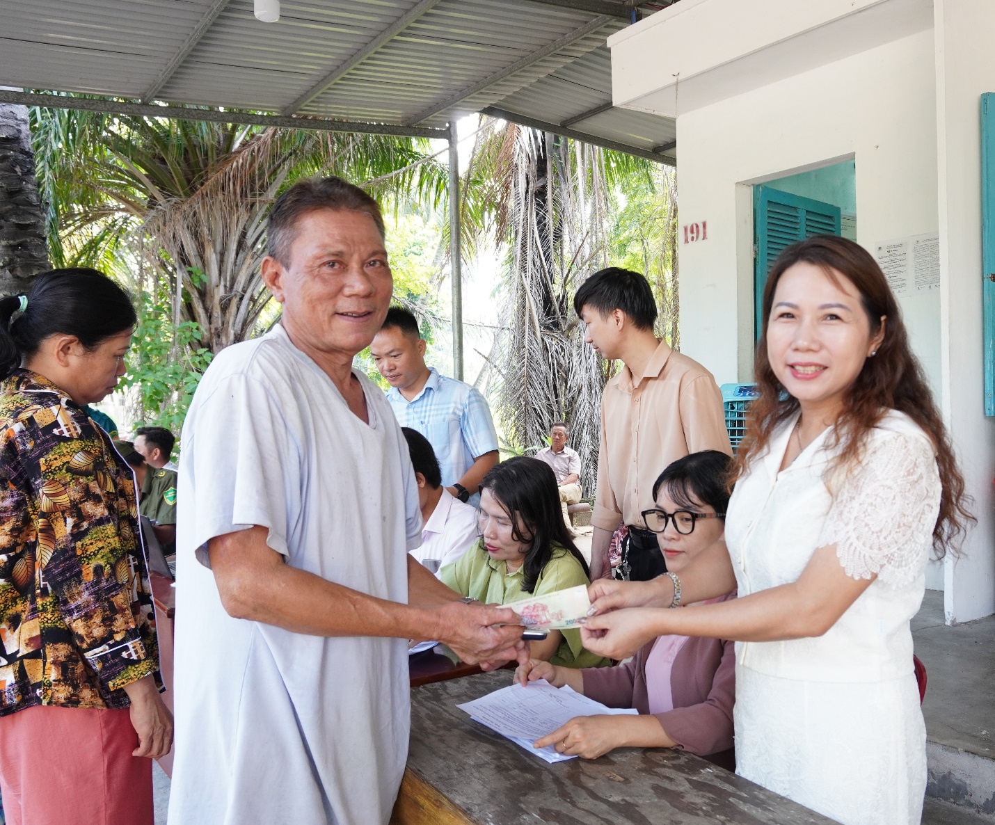 Theo ghi nhận tại điểm trao quà Bệnh viện Phong – Da liễu Trung ương Quy Hòa, đến hết ngày 4/9 tổ công tác phường đã triển khai trao quà của Chính phủ cho 351 hộ (987 người dân); trong đó 248 hộ (579 người) là bệnh nhân Bệnh viện Phong – Da liễu Trung ương Quy Hòa. Tổng số tiền được trao tặng trực tiếp là 98,7 triệu đồng. Mọi khâu được thực hiện tại chỗ: kiểm tra, đối chiếu thông tin trên Cơ sở dữ liệu quốc gia về dân cư; cán bộ hướng dẫn người dân ký nhận theo đúng thủ tục, ưu tiên bệnh nhân, cao tuổi, người khuyết tật và các hoàn cảnh khó khăn.