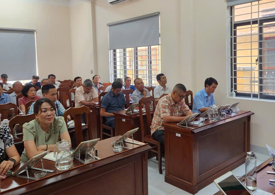 Quang cảnh cuộc họp đánh giá tình hình quản lý đất đai, trật tự xây dựng và công tác lập lại trật tự đô thị