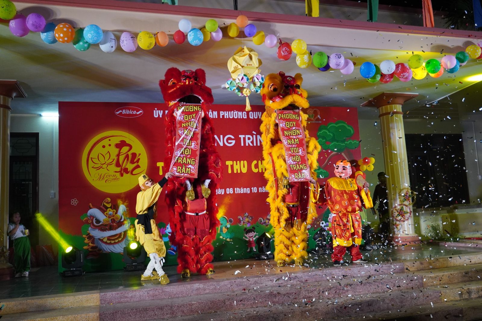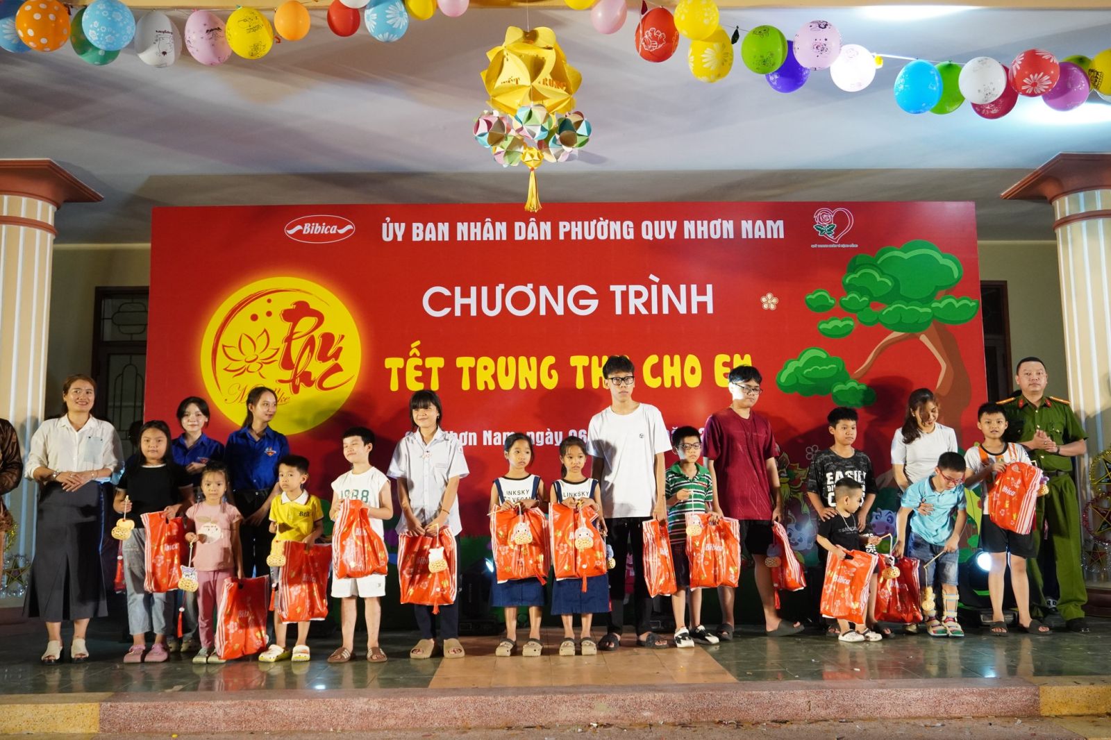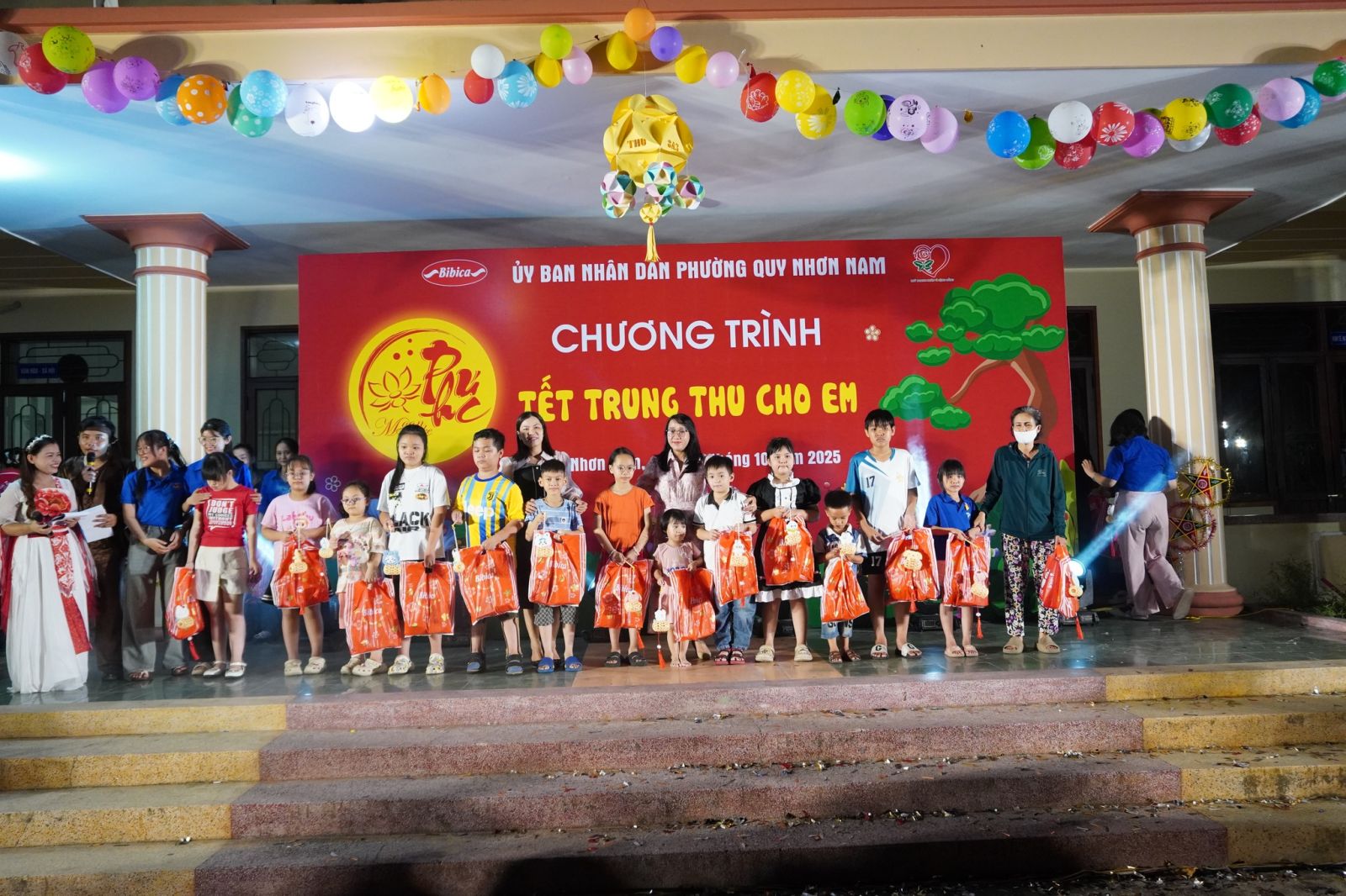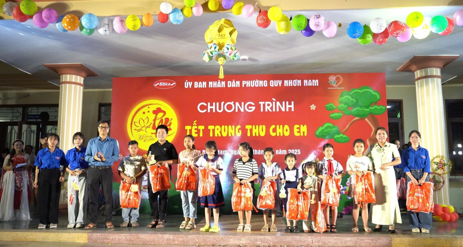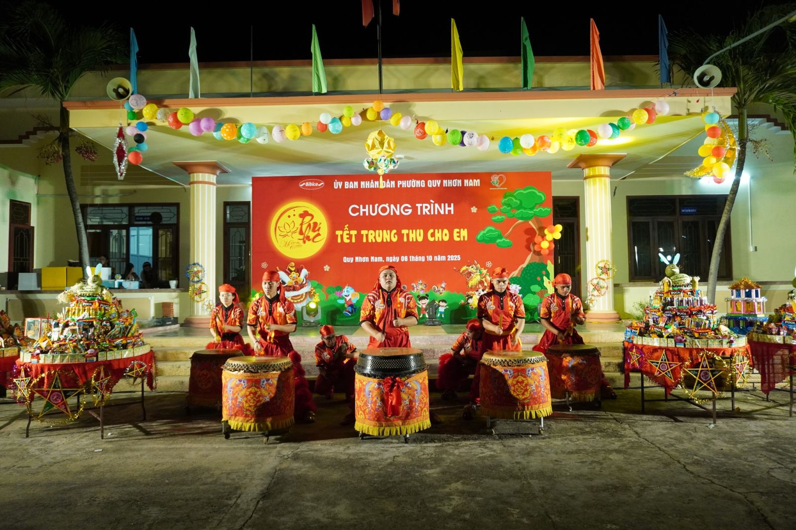 Tại chương trình, các em được hòa mình trong không khí rộn ràng của múa lân, rước đèn, những tiết mục văn nghệ do chính thiếu nhi thể hiện, cùng hoạt cảnh chị Hằng – chú Cuội quen thuộc. Khoảnh khắc phá cỗ Trung thu, cùng nhau sẻ chia bánh kẹo, lồng đèn và những phần quà ấm áp, đã để lại trong lòng các em nhiều niềm vui và ký ức đẹp. Nhằm mang đến cho các em, đặc biệt là những em có hoàn cảnh khó khăn, một mùa Trung thu trọn vẹn và ý nghĩa, UBND phường Quy Nhơn Nam đã trao tặng 250 suất quà với tổng trị giá 75 triệu đồng, thể hiện sự quan tâm, sẻ chia của chính quyền địa phương cùng các đơn vị, doanh nghiệp và nhà hảo tâm, góp phần thắp lên niềm vui, tiếp thêm động lực để các em phấn đấu học tập, rèn luyện và lớn lên trong vòng tay yêu thương của cộng đồng.